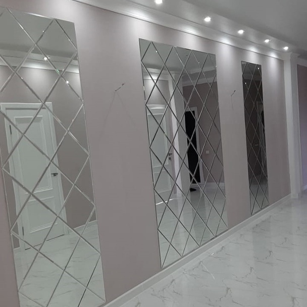 Использована зеркальная плитка "вытянутый ромб" с фацетом.